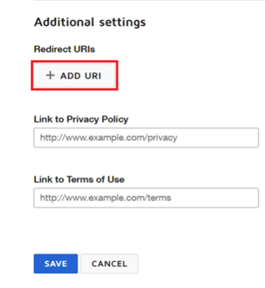 - [ADD URI]を選択して、下記のRedirect URIを入力