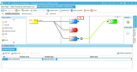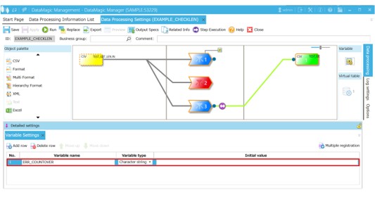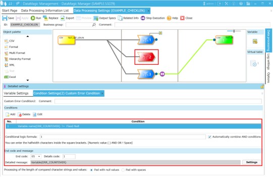 3. Using Custom Error Condition, configure settings so that if the ERR_COUNTOVER variable is not null, the processing ends in an error
