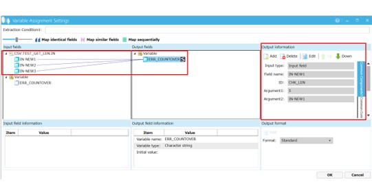 2. In Variable Assignment Settings, assign the results of the check whether the character limit has been exceeded to the ERR_COUNTOVER variable