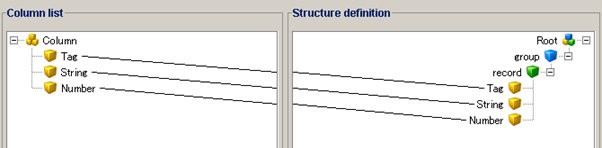 1. Select a field defined in the [Column list] and do drag and drop the record to a record defined in the [Structure Definition].