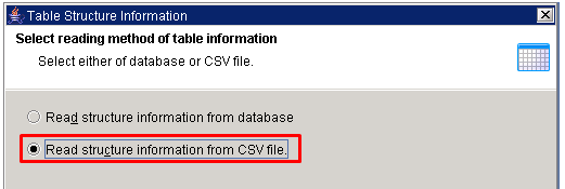 Other database or CSV file to get information from a table structure and set it as the schema definition.