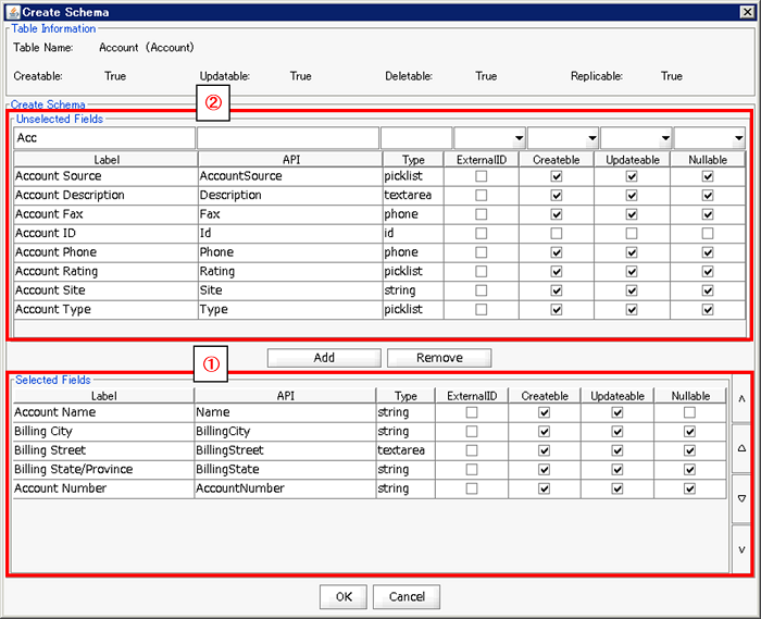 Set items of the table specified in the [Child table name], to be read from Salesforce. |