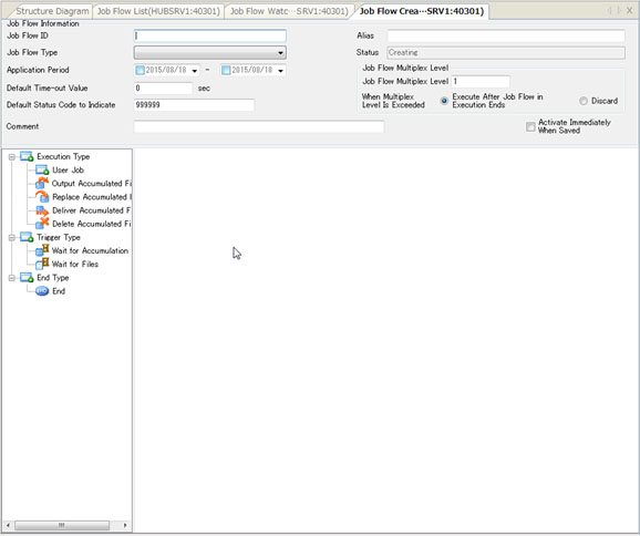 on the toolbar to open the Job Flow Creation screen with the initial status.