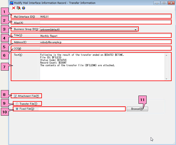 | [Note] | The mail interface function is available only in HULFT for Windows. |