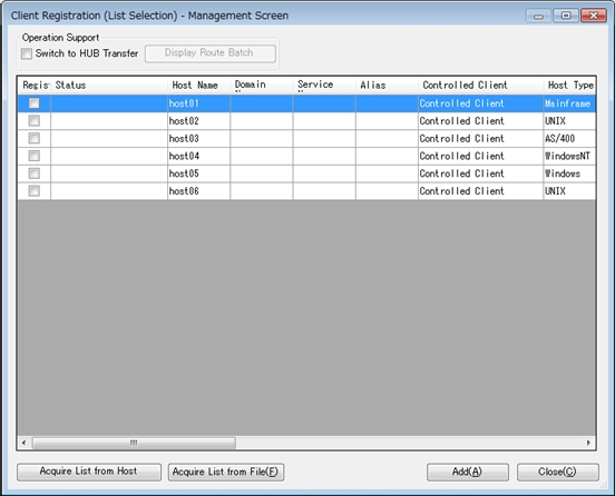 | [Note] | When the Controlling Server is HULFT-HUB Server that is lower than Ver.3, although you can select 'Client outside of Control (with Relay)' or 'Client outside of Control (without Relay)' for the Client under Control, the client is registered as a Client under Control in either case. |