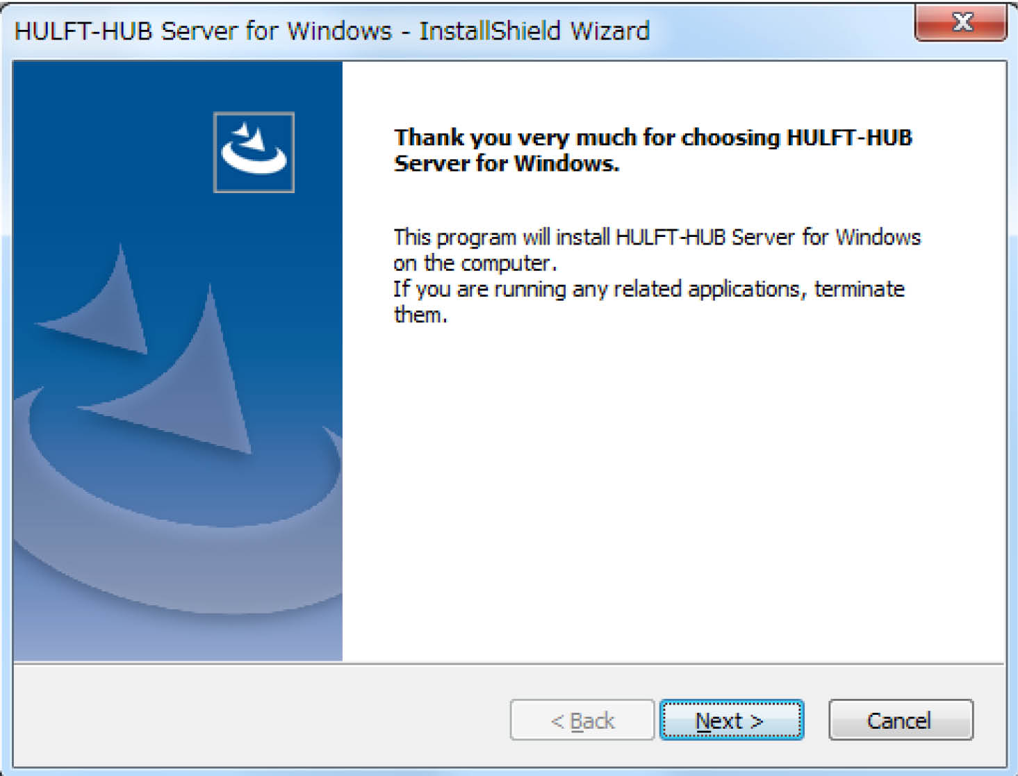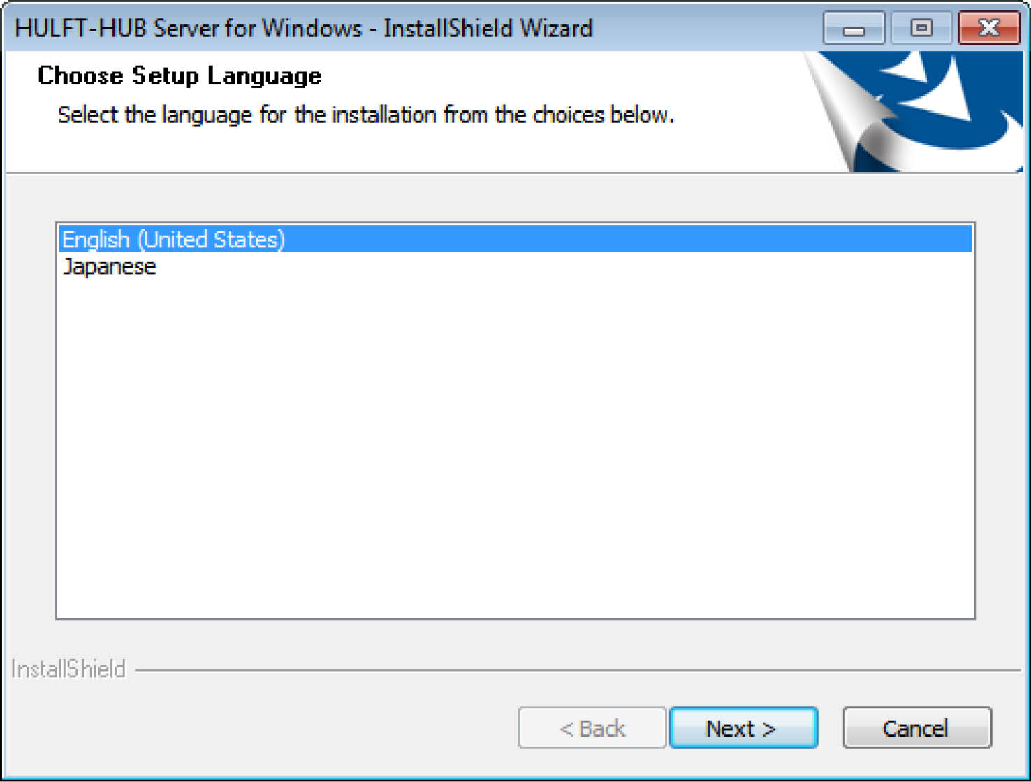 Use the setup program to install HULFT-HUB Server. When you run 'Setup.exe' on the provided medium, the "Selection of language" window is displayed.