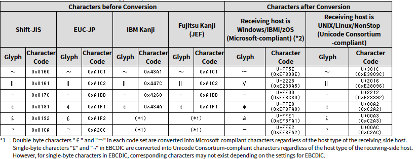 For Code Conversion to UTF-8 from other code sets, the conversion results of some characters vary depending on the conversion target host type.