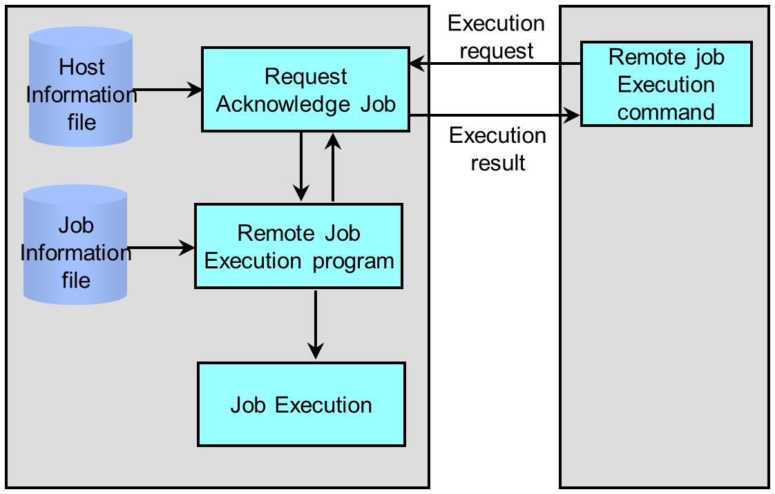 The job of the local host type can be executed from other hosts. When a Remote Job Execution Request is acknowledged, the job specified in the Remote Job Execution program is executed. It is necessary to register the executed job in the Job Information beforehand.
