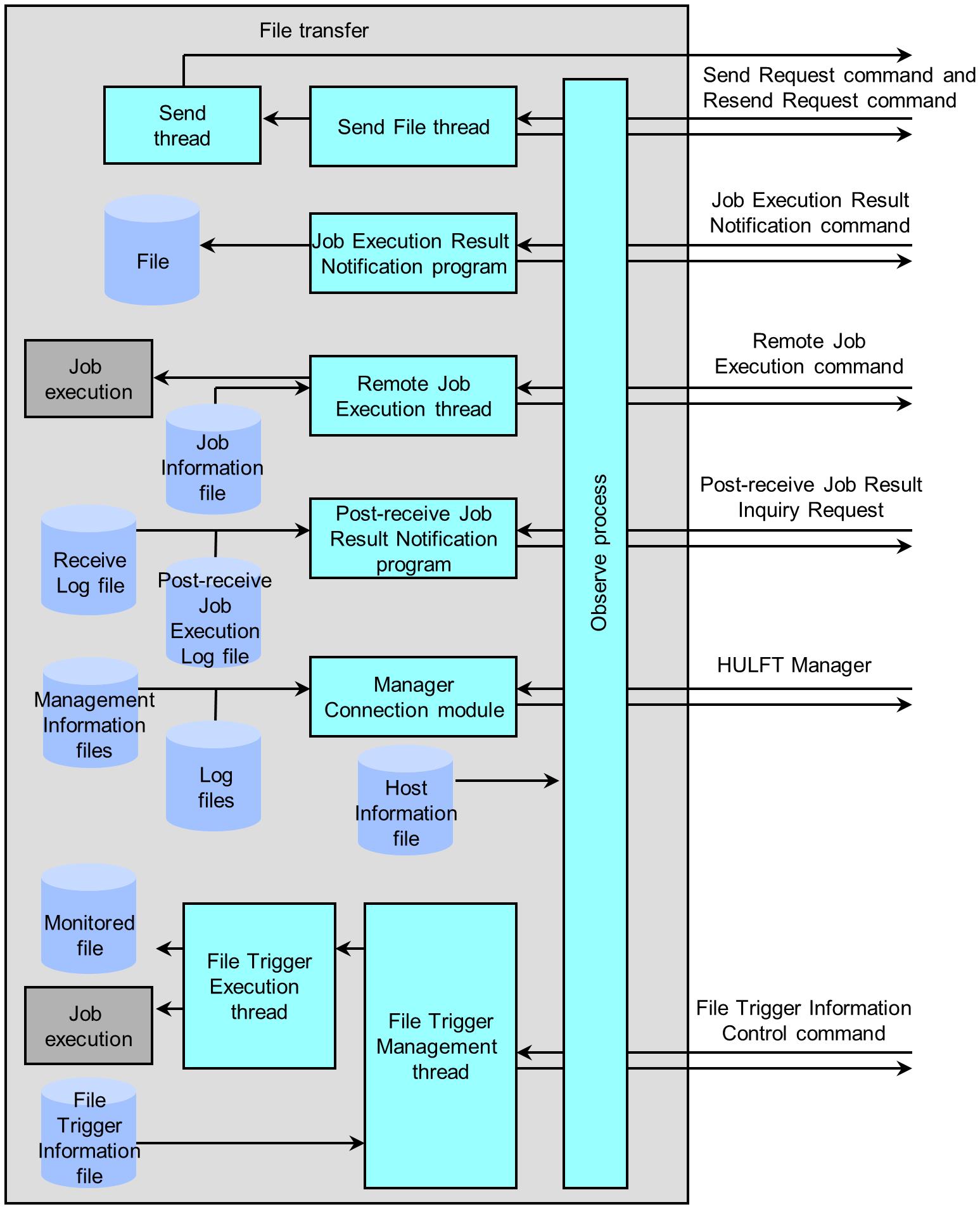 In the Observe system, processes for the Send Request, the Resend Request, the Job Execution Result Notification, the Remote Job Execution, the Manager Connection, the Post-receive Job Result Inquiry, and the File Trigger are carried out through the Observe process.