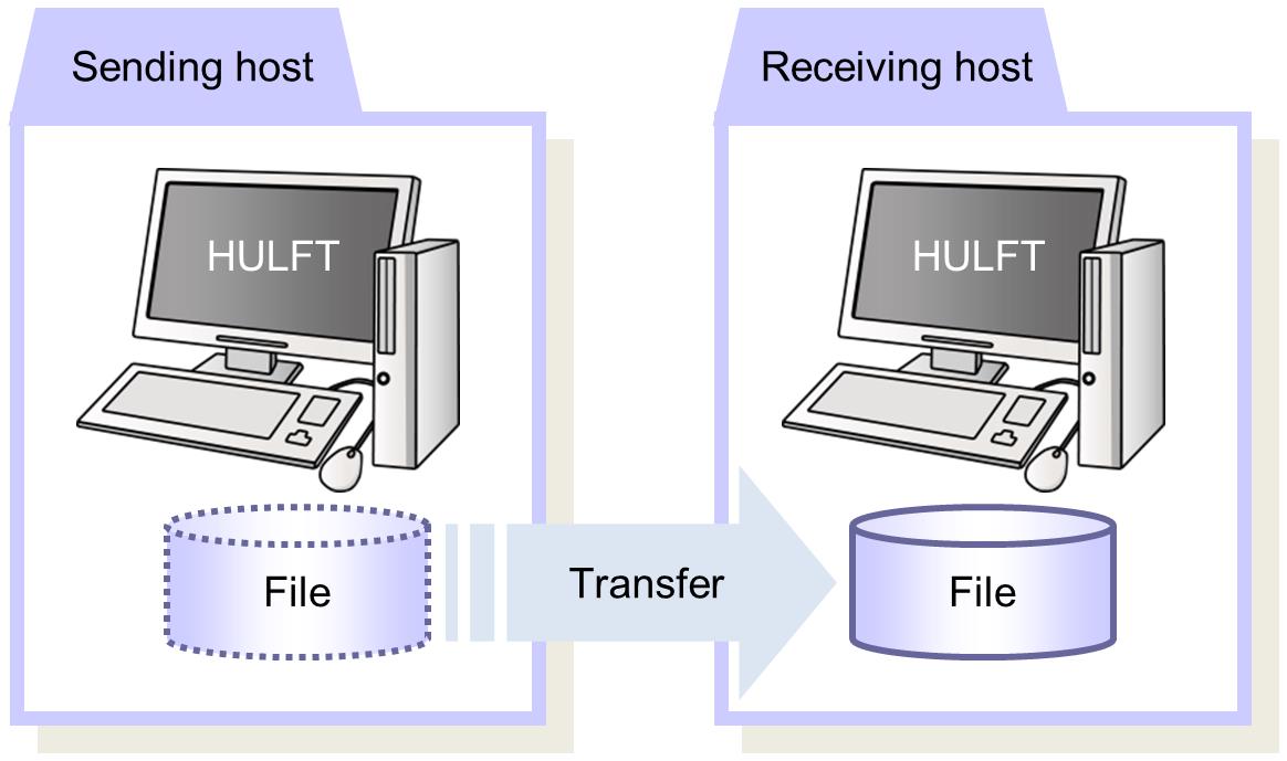 On the host on the sending side, prepare a file to send, and specify the file ID, a file to send, a remote host, and any other transfer conditions in the management information. On the host on the receiving side, ensure that there is enough storage for the Receive file, and specify the file ID, file to receive, remote host, and any other receive conditions in the management information.