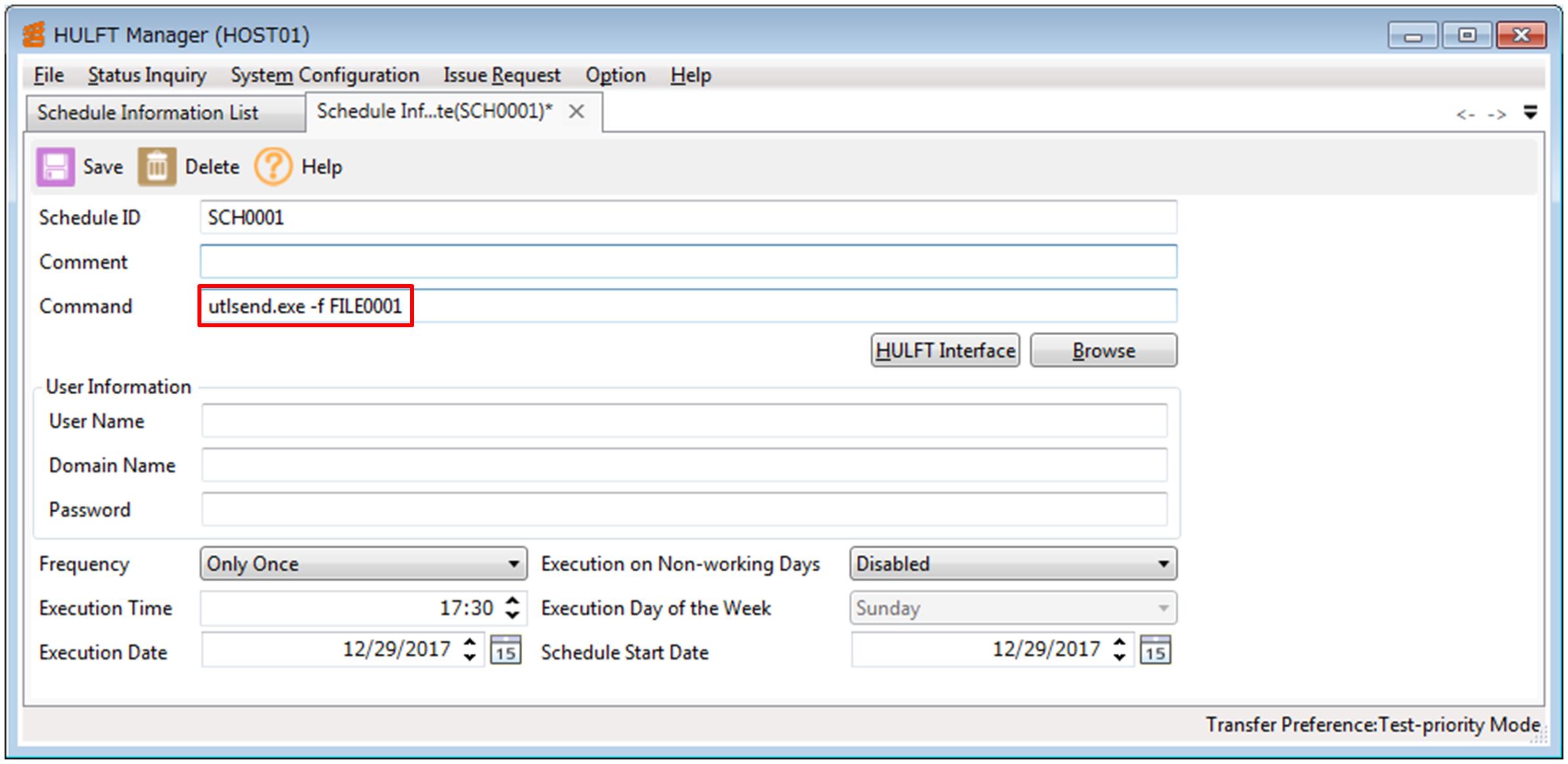 On the Schedule Information Update screen, click HULFT Interface.