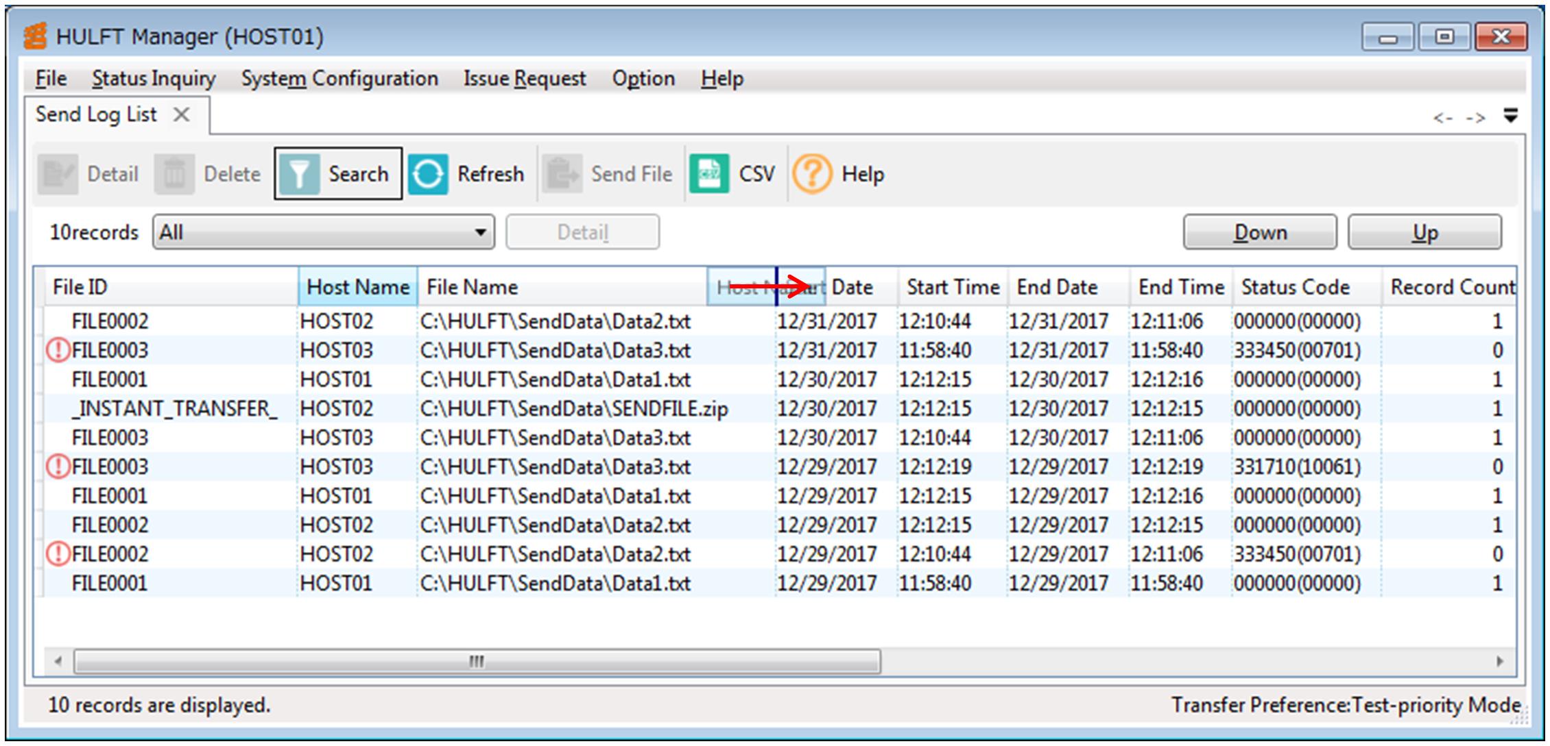 Select the column title of the column you want to move in the list, drag the selected column with the mouse, and drop it at the intended location.