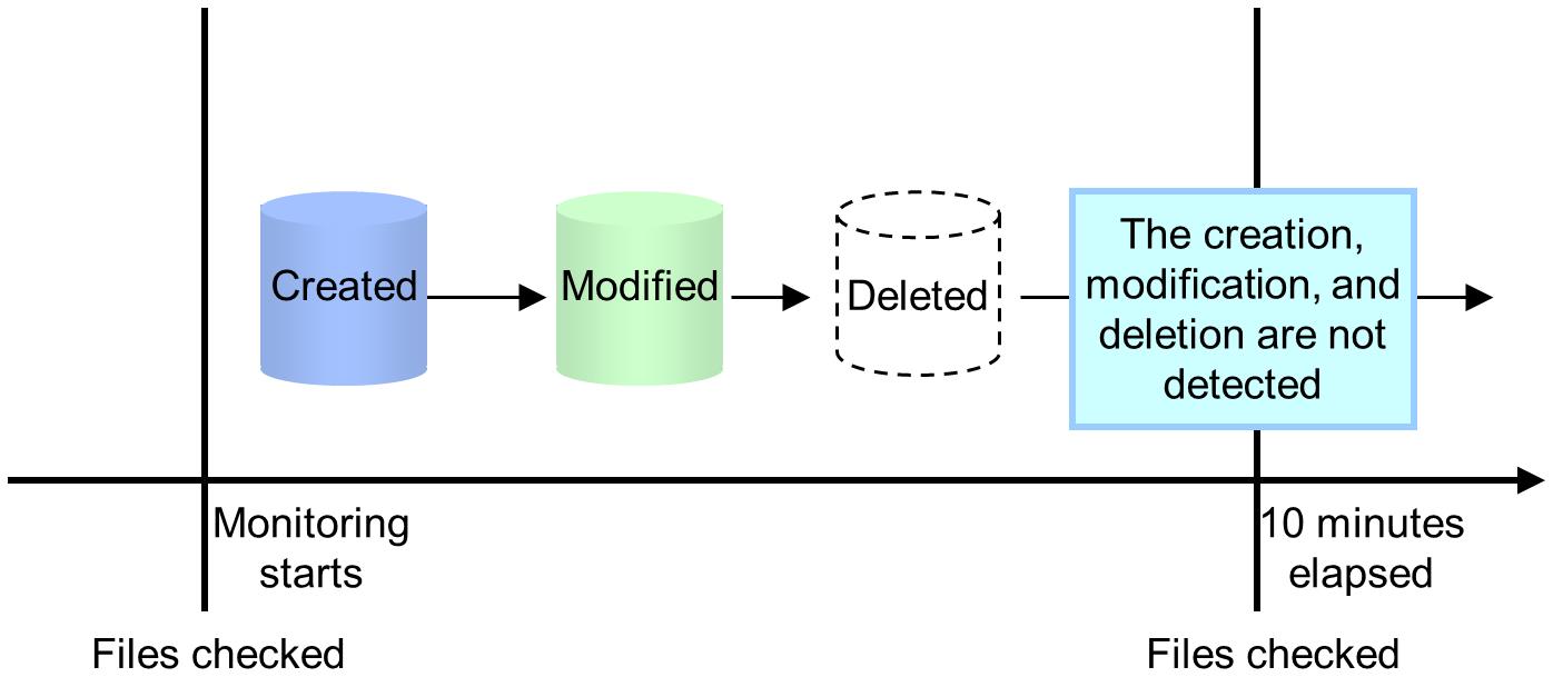 Creation and deletion are detected only after monitoring starts, because monitoring is performed based on the file status at the time when monitoring started.