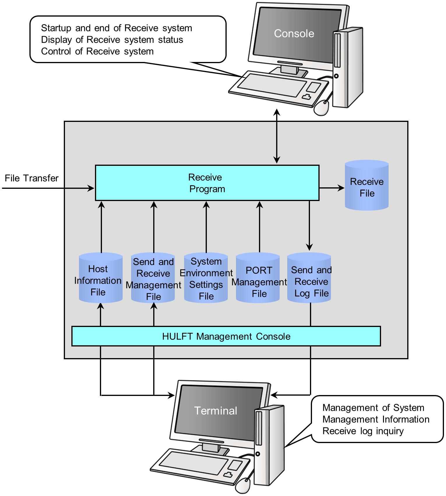 Manage the Receive system using the console and a terminal. Use the console to manage the Receive system, and use the terminal to manage the information required by the Receive system.