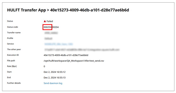 Select Receive daemon log or Send daemon log which is at the bottom of the displayed details page.