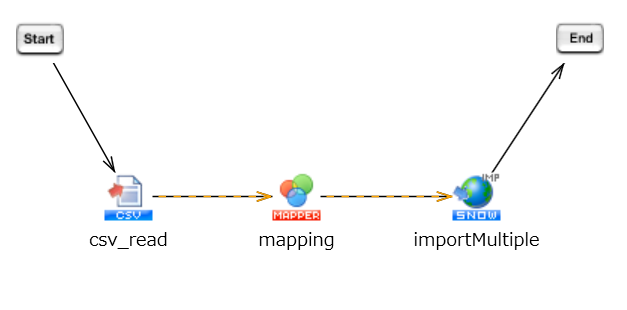 From the tool palette, drag Cloud > ServiceNow > Import multiple onto the script canvas.