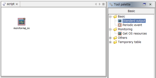 Drag and drop Basic > Basic > Standard output from the tool palette onto the script canvas.