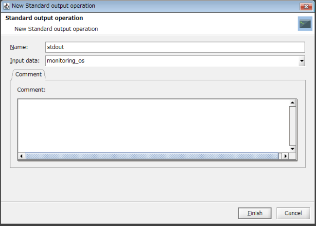 The New Standard output operation property settings dialog box appears. Configure the settings for the new Standard Output processing.