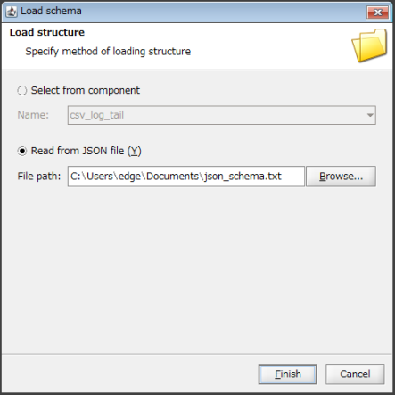 = Remarks =You can also configure the schema settings manually, but when the JSON format is complicated, letting the schema be read from a JSON file makes operations simpler.
