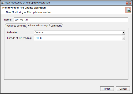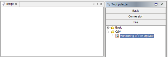 Drag and drop File > CSV > Monitoring of File Update from the tool palette onto the script canvas.