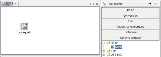 Drag and drop Generic protocol > HTTP > Send from the tool palette onto the script canvas.