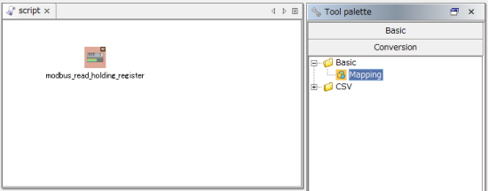 Drag and drop Conversion > Basic > Mapping from the tool palette onto the script canvas.