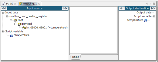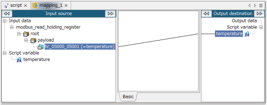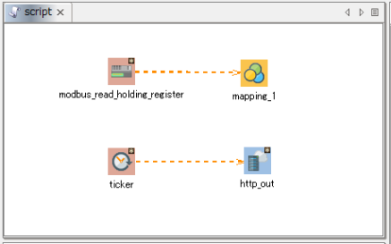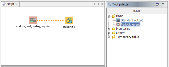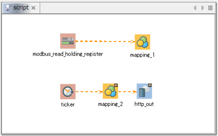 In the previous procedure, we created a stream processing to obtain temperatures from the holding registers of Modbus TCP-compatible devices and save them to script variables.