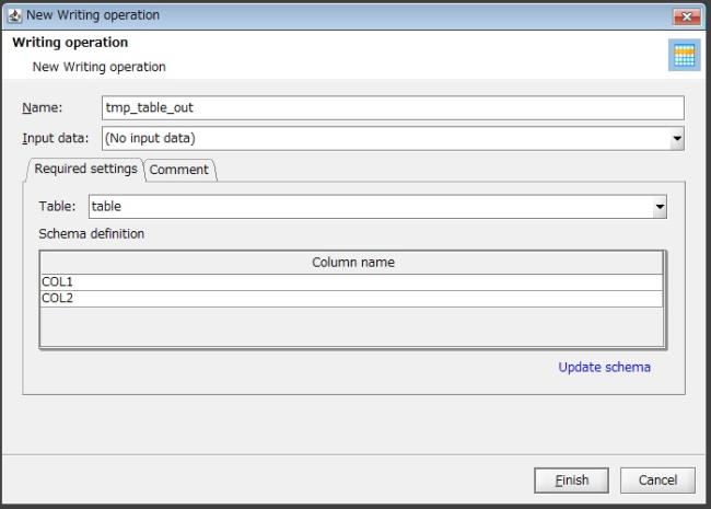 Display the schema definition by performing Update schema on the schema of the temporary table that you selected for Table.