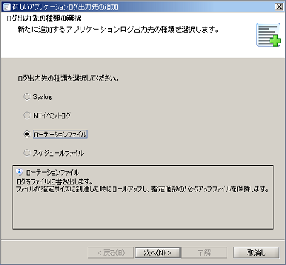 アプリケーションログ出力先の設定の詳細については、「アプリケーションログ出力先設定」を参照してください。