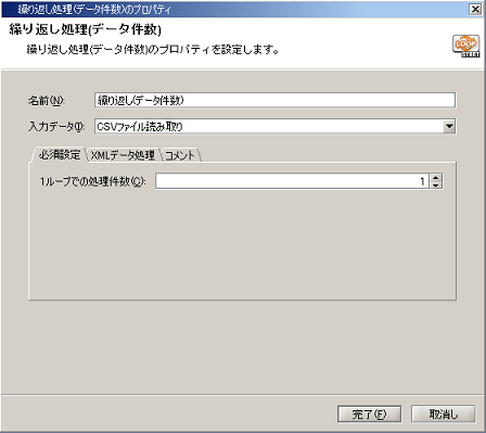 | 1ループでの処理件数 | 必須 | 使用可 | 1ループでの処理件数を入力します。 |