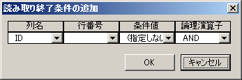 | 追加 | 「読み取り終了条件の追加」ダイアログが表示されます。 |