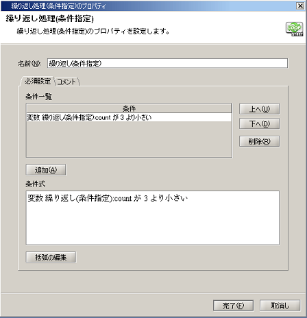 2. 繰り返し(条件指定)処理のプロパティ設定は以下の通りです。
