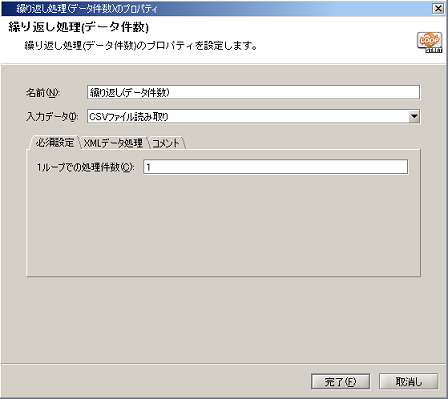 | 1ループでの処理件数 | 必須 | 使用可 | 1ループでの処理件数を入力します。 |