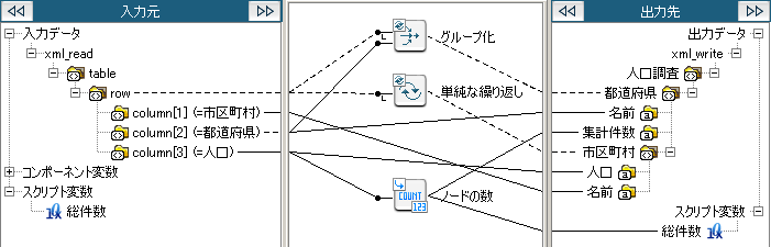 テーブルモデル型のコンポーネントに集計結果を出力する場合には、XML型の出力スキーマを用いていったん集計を行い、その結果データを再度Mapperでテーブルモデル型のコンポーネントに出力してください。