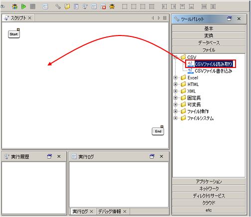 | ファイル | CSVやXMLなどの各種ファイルフォーマットに対応したアダプタが属するカテゴリです。 |