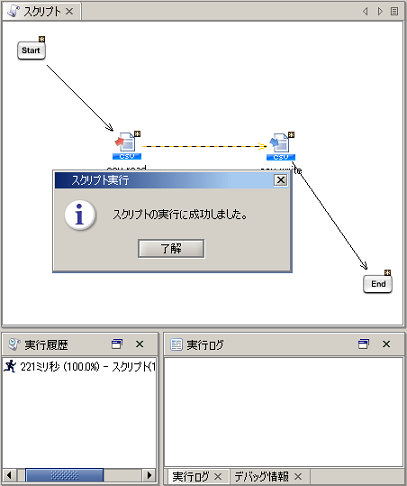 デバッグモードで実行した場合は、全体の処理時間のほかに、アイコンごとの処理時間が表示されます。