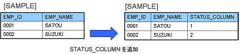 例:「SAMPLE」テーブルに「STATUS_COLUMN」をステータスカラムとして追加