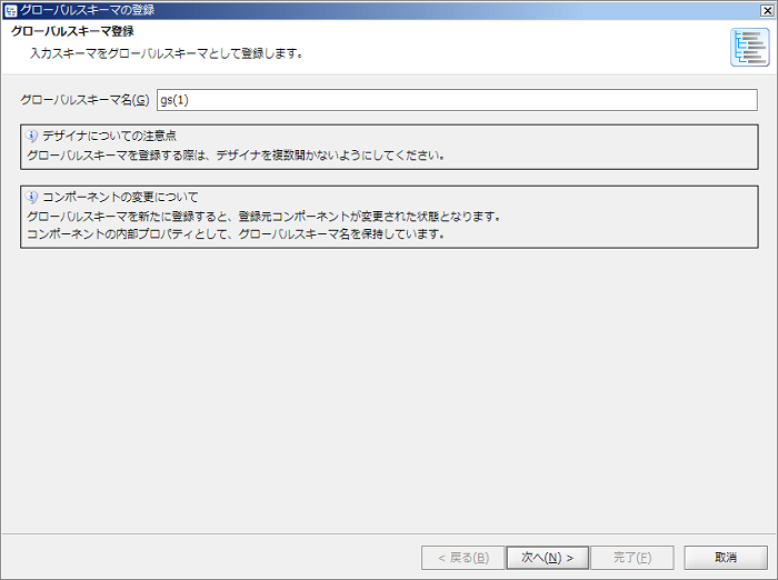 新規登録の場合、[登録先グローバルスキーマ]は存在しないため、「(新規登録)」と表示されます。
