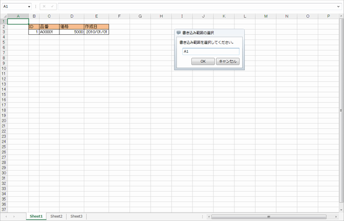 | 書き込み開始セルアドレス | 選択した書き込み範囲の開始セル |