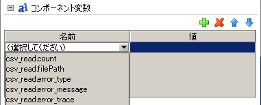 アイコンを押下して行を追加、[名前]のリストから任意のコンポーネント変数を選択し、[値]フィールドに設定値を入力します。