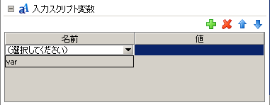 アイコンを押下して行を追加、[名前]のリストから任意のスクリプト変数を選択し、[値]フィールドに設定値を入力します。