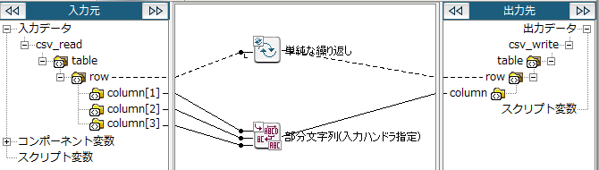 文字の切り出し開始位置・切り出し文字数の設定は入力データによって設定します。