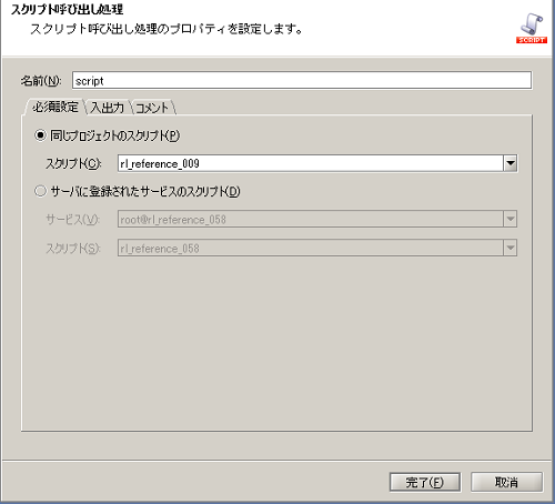 | スクリプト呼び出し処理 | プロジェクト内のほかのスクリプトやサーバに登録されたスクリプトを呼び出します。 | 「基本」-「処理」-「スクリプト呼び出し」 |