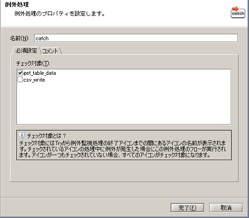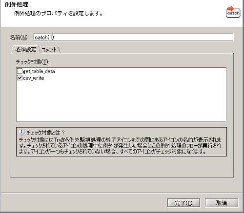 - [チェック対象]にはエラー処理を行いたい処理のみにチェックを入れます。