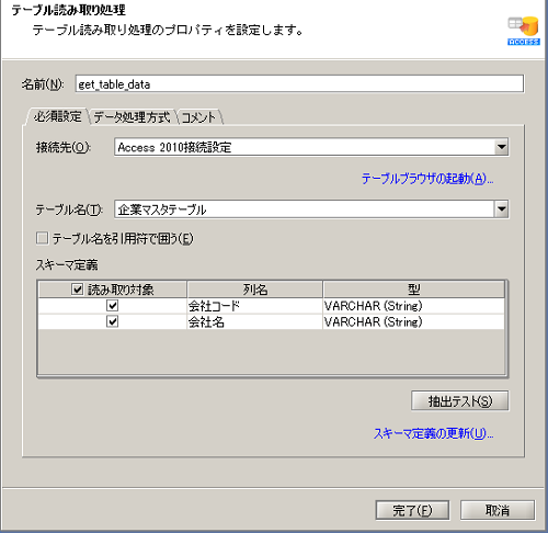 - テーブル読み取り処理の設定は、以下のように行います。