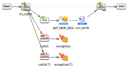 対象となる処理は「テーブル読み取り処理」および「CSVファイル書き込み処理」です。