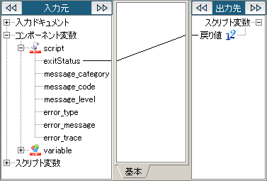 - スクリプト呼び出し処理のコンポーネント変数「exitStatus」をスクリプト変数「戻り値」にマッピングします。