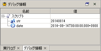 スクリプトを実行すると、文字列型のスクリプト変数の値が日付/時間型のスクリプト変数に格納されます。