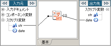| (1) | 日時のパース | 入力文字列を指定フォーマットで日時にして出力します。 [必須設定]タブの[フォーマット]には「yyyyMMdd」を入力します。 |