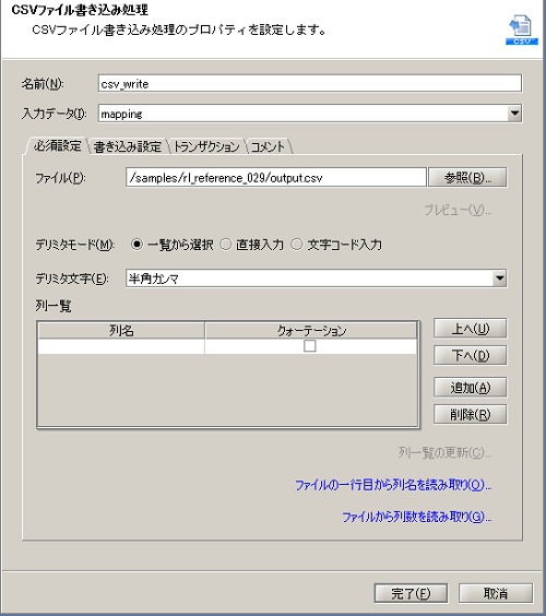 実行結果のイメージについては、サンプルプロジェクトのサンプルデータ「output.csv」を参照してください。